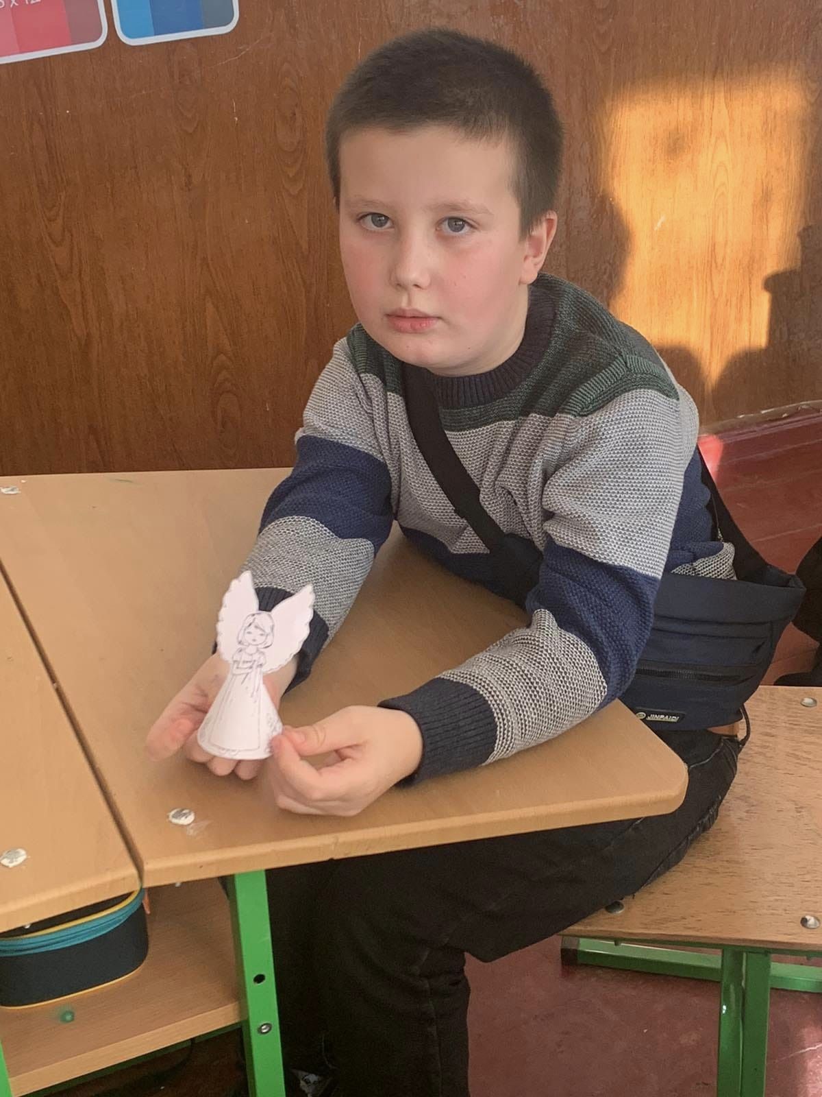Учні початкової та середньо ланки малювали малюнки, виготовляли обереги для захисників, ознайомилися з поняттям “Гідність”, розглядали метафоричні світлини та формували “Хмару слів”.