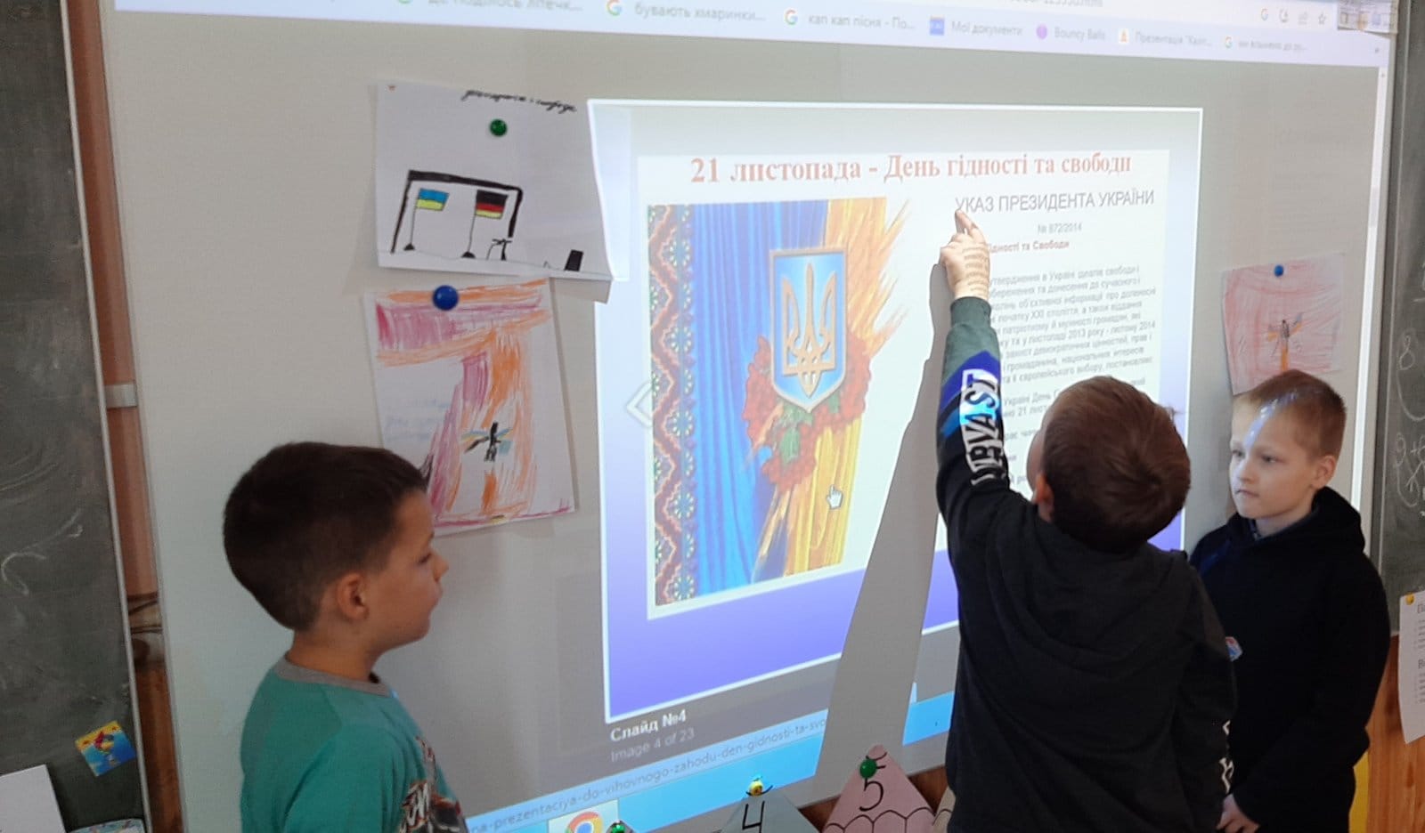 Учні старших класів переглянули освітнє відео, присвячене Революції Гідності 2013-2014 р. подіям, з яких починалося відзначення Дня гідності в Україні, розповідали свої історії про те, що для них є гідність.